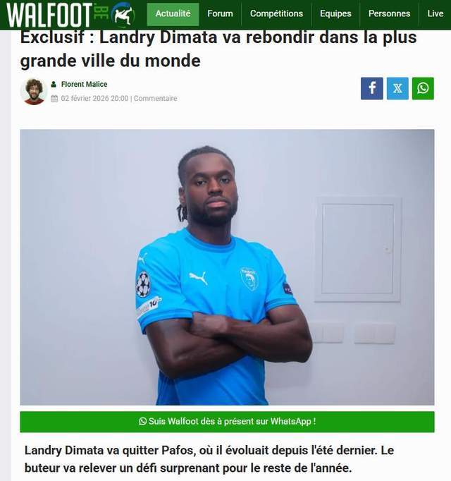 现在他在塞浦路斯过得并不开心,22场只打进1球,他希望来中国踢球重返比利时国家队,报道还说,他将来到拥有3200万人口的世界最大城市之一重庆,综合媒体和记者的权威性,以及迪马塔与重庆铜梁龙的近况来看,迪马塔加盟重庆铜梁龙的可信度还是非常高的!(老邱)